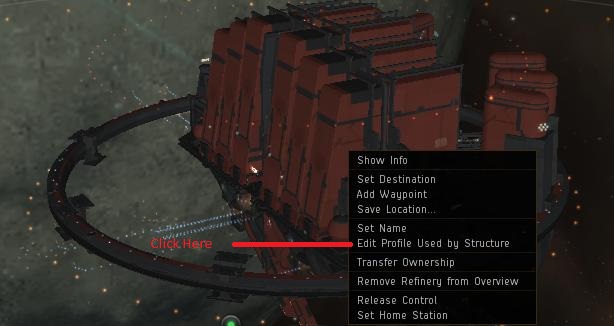 Once Control has been Taken Edit your Structure Profile as per below. Right Click on the Structure and Click on Edit profile used by Structure