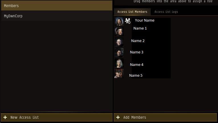 Now click on Members on the Left hand side and add the members you want to have Control access on your stations, Say best friends or Co-CEO and so forth. Those people will be able to start moon mining as well as fuel stations.