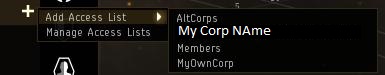 Now you click on AltCorp on the left and add the corps of the allaince within that on the right hand side as shown below.